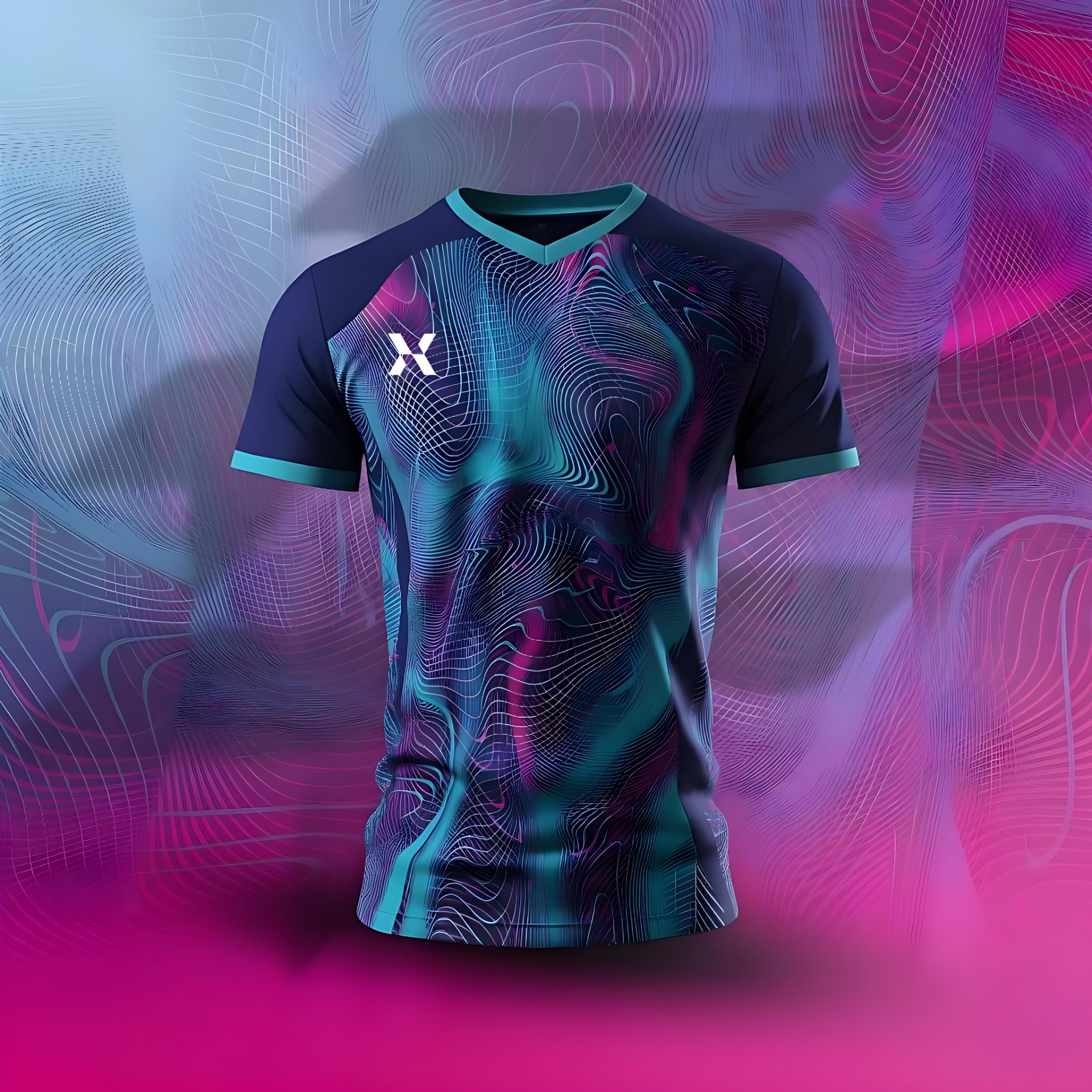 Light up the field with the Neon Drift Kit, featuring a dark base layered with vibrant neon waves in electric blue and pink. Crafted from high-performance fabric, this kit combines futuristic style with comfort, breathability, and agility.